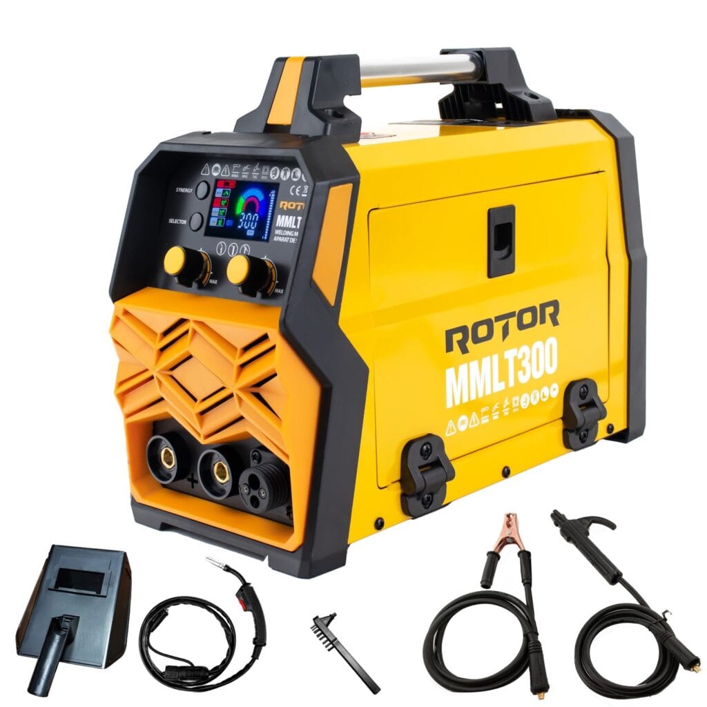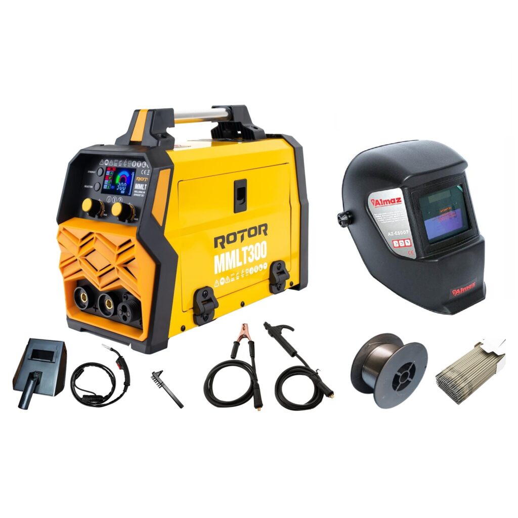 Aparat/Invertor Sudura 300Ah – MIG (sarma) /MMA (electrod) (TIG) – ROTOR – (14738) + Masca Sudura Automata/Sarma Flux/Electrozi (CADOU)