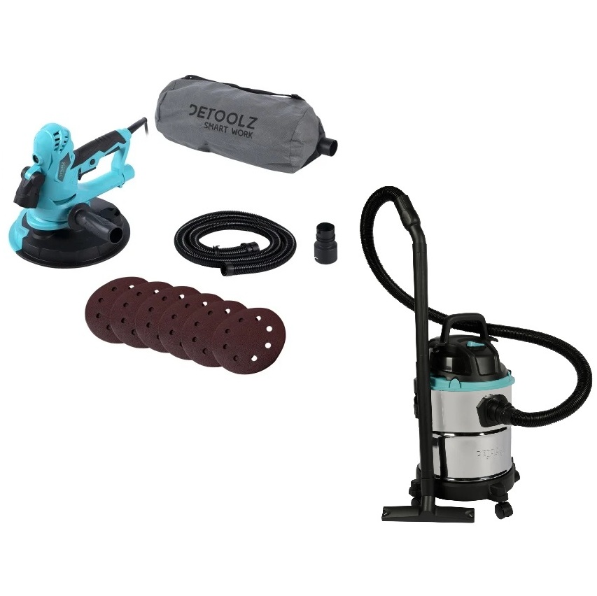 Set 2 in 1 – Aparat de slefuit pereti 180mm – DETOOLZ + Aspirator – 1000W (Bobinaj Cupru) – (DZ-C210 + DZ-CI104)