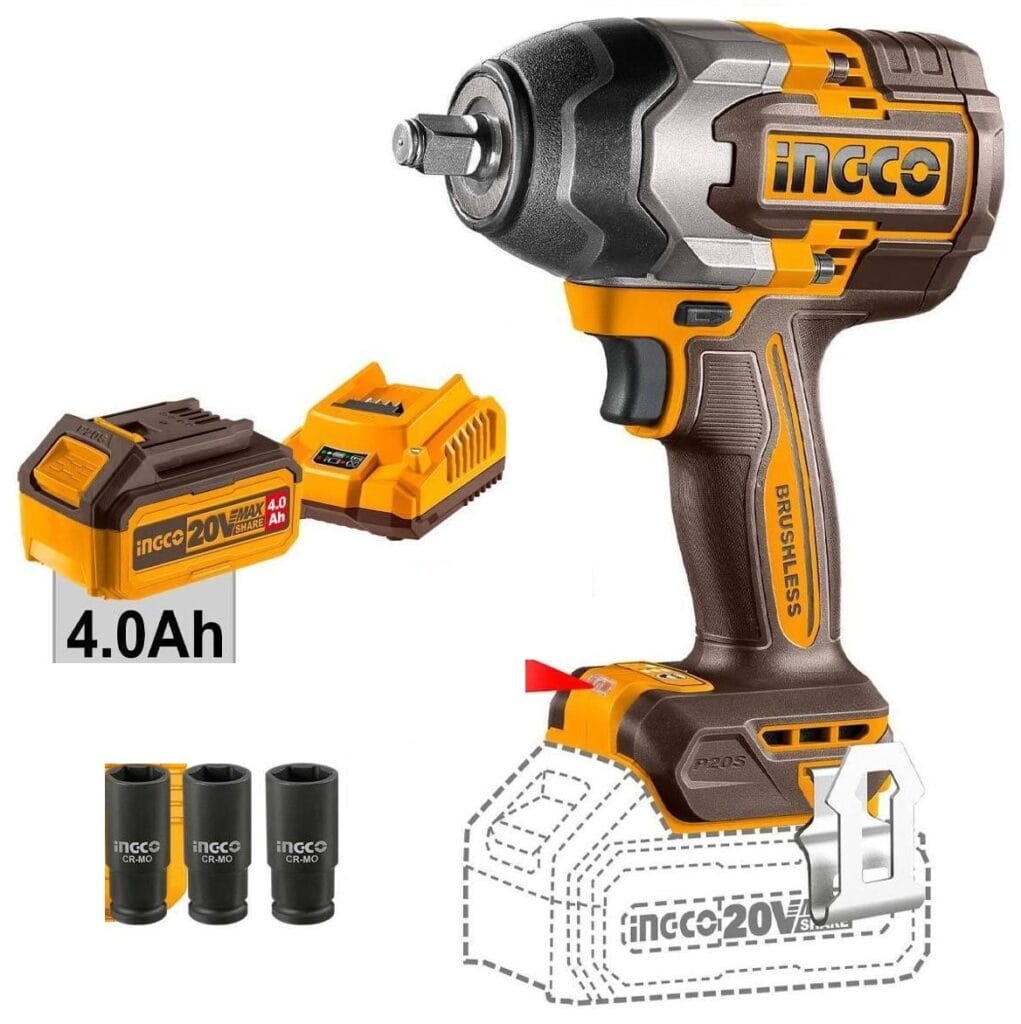 Masina de Insurubat electrica/Cheie Impact cu Acumulator – 1000Nm – 1/2 – INGCO (Industrial/Bobinaj Cupru) – 20V – CIWLI20851+ FBLI2002 + FCLI2001E