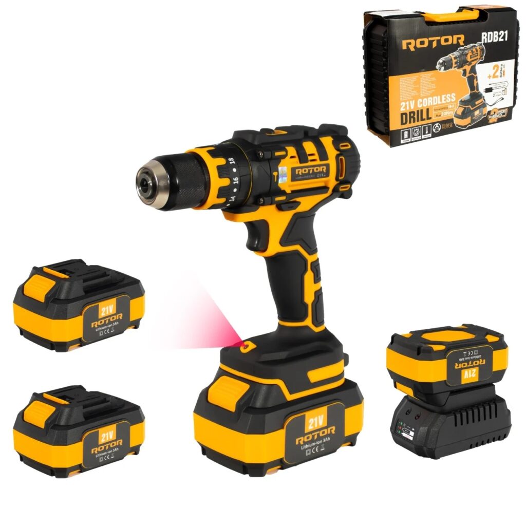Masina de Gaurit/Insurubat cu 2 Acumulatori 21V/3Ah (30 Nm) – ROTOR RDB21 – Bobinaj Cupru – Brushless (14522)